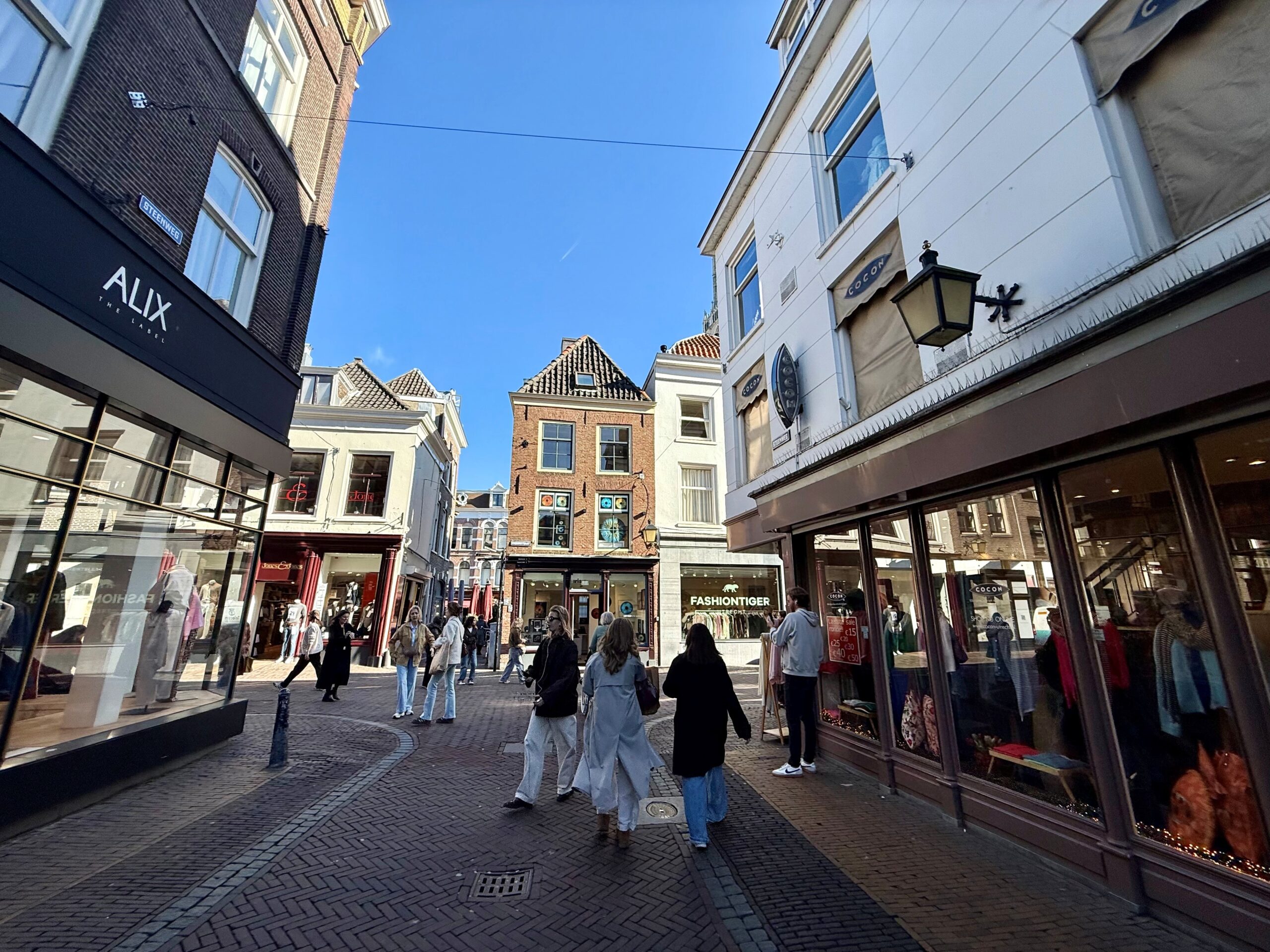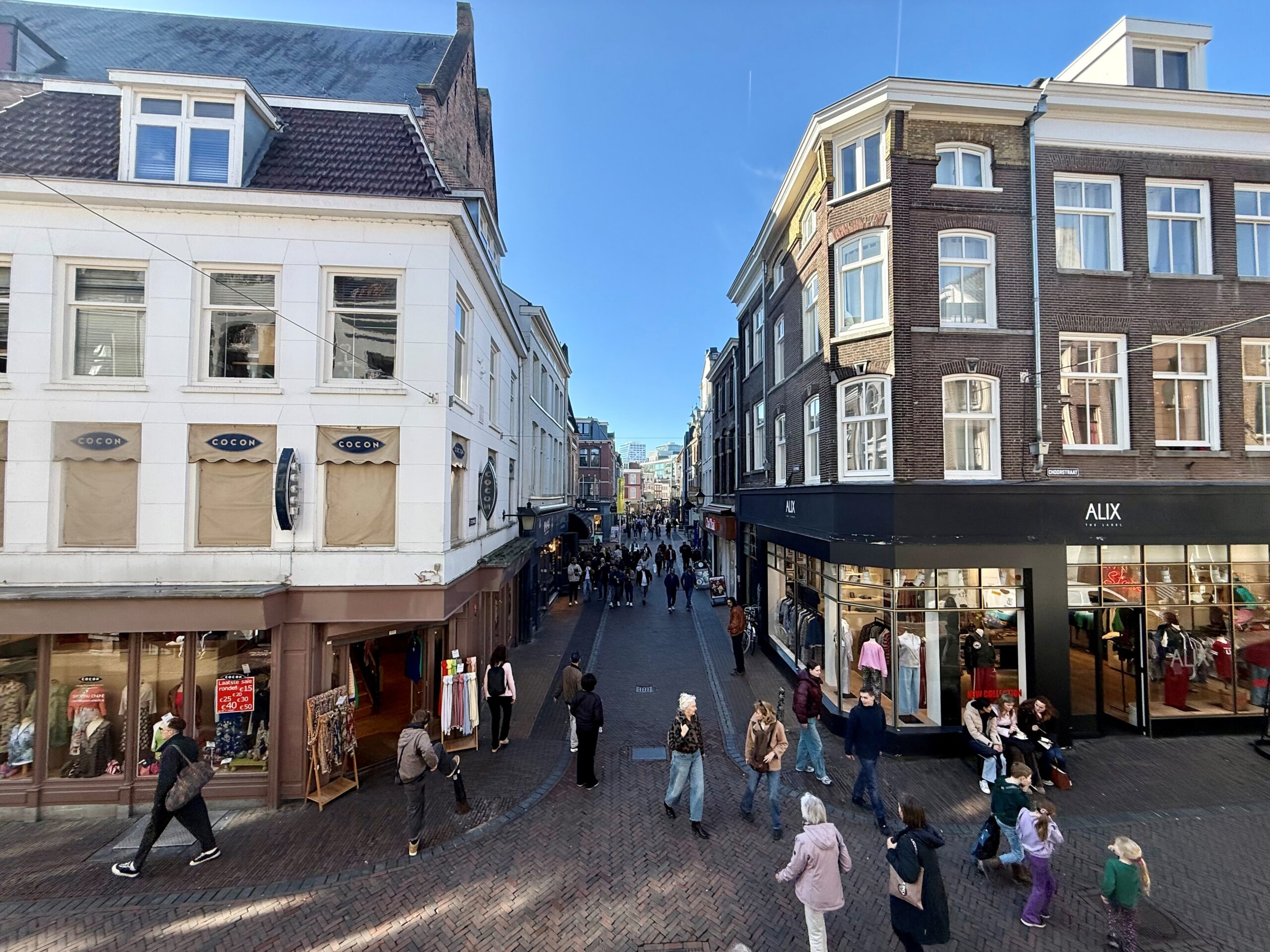 De winkel heeft een frontbreedte van ca. 4 meter aan de Choorstraat en ca. 5 meter aan het Hanengeschrei.